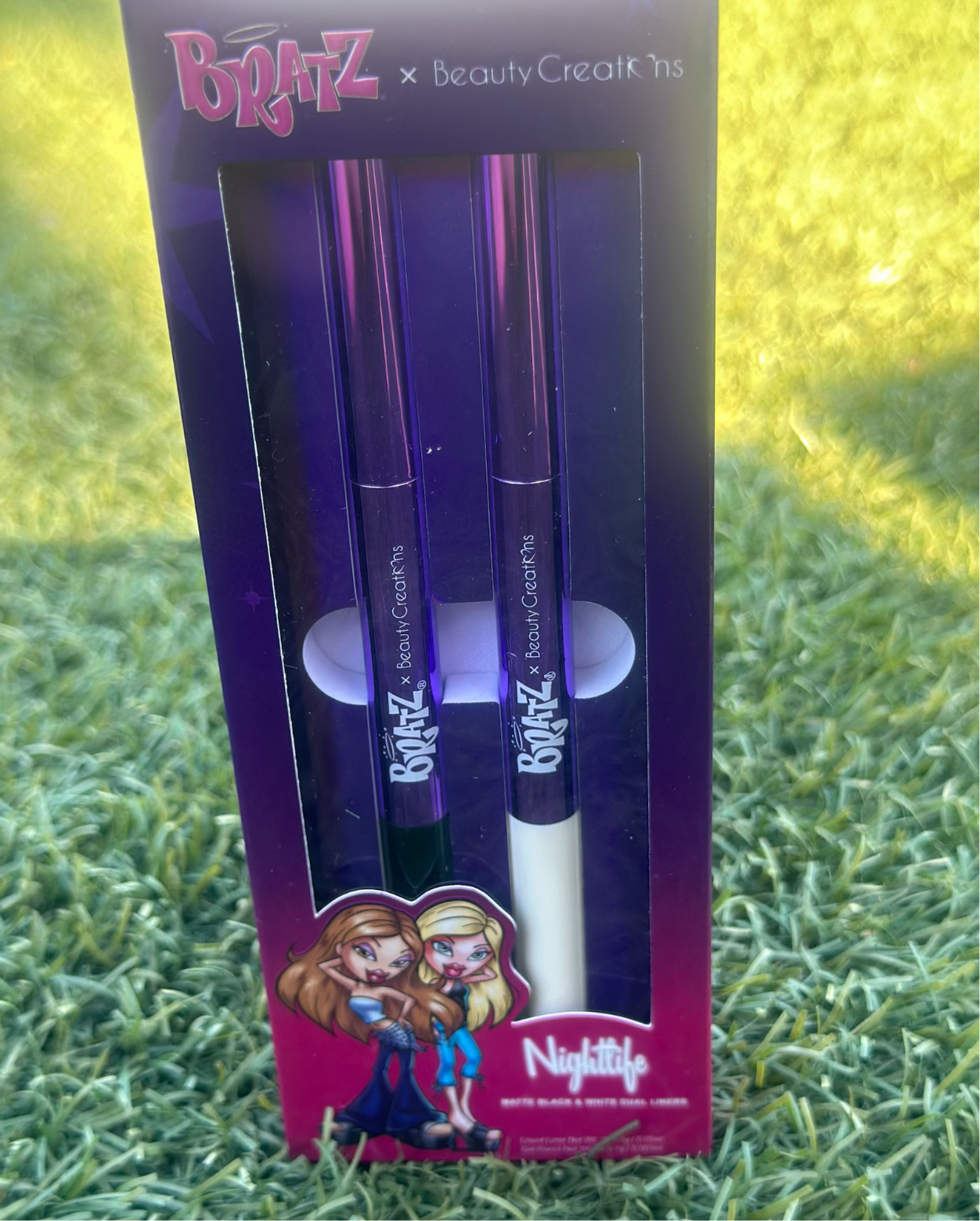One black eyeliner , one white eyeliner
